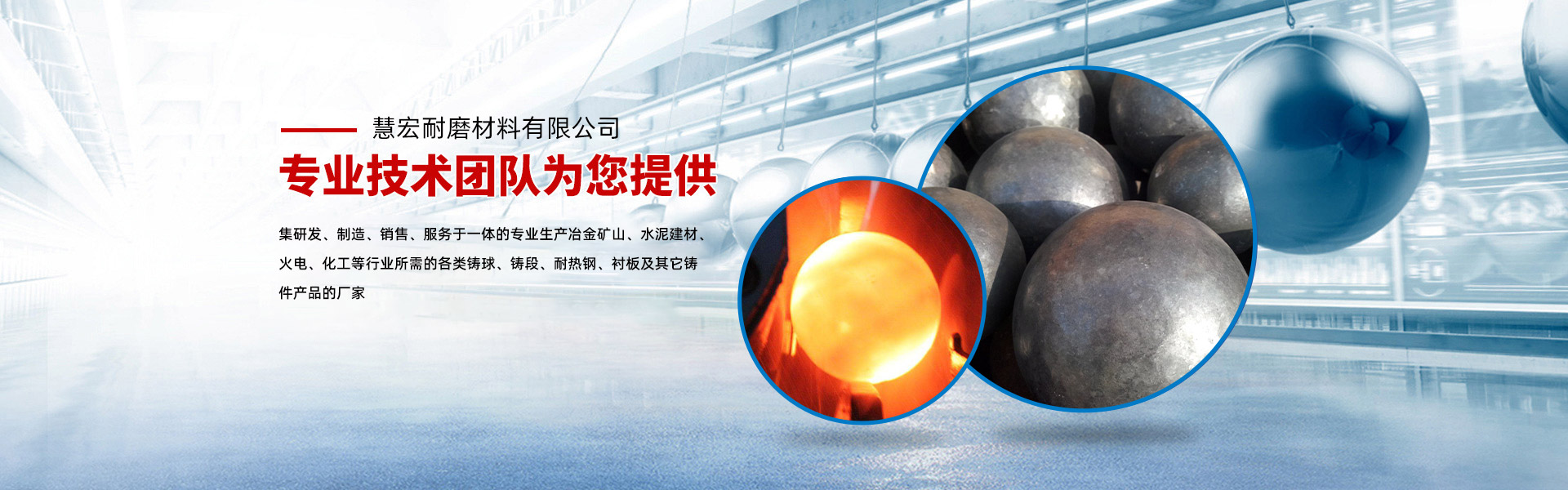 適合你的,精良的團隊生產線慧宏耐磨是一家集研發(fā)、制造、銷售、服務于一體的專業生產冶金礦山、水泥建材、火電、化工等行業所需的各類鑄球、鑄段、耐熱鋼、襯板及其它鑄件產品的廠家。